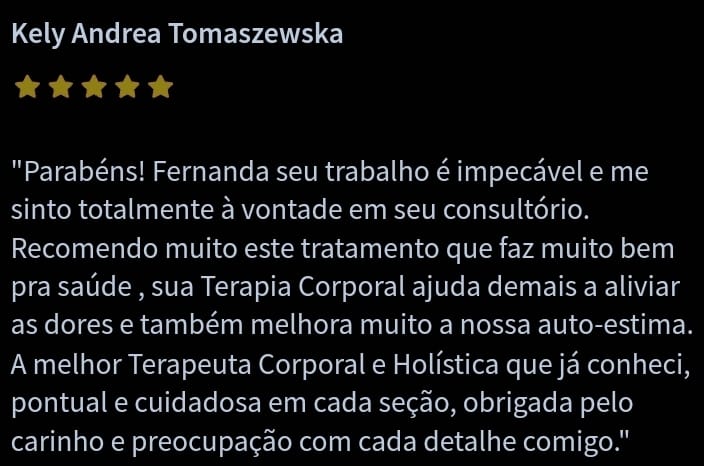 Eu sou Fernanda Firmino, da Cor & Vida Terapia. Ajudo pessoas a amenizarem suas dores físicas, emocionais e espirituais, tratando o paciente de forma global, proporcionando equilíbrio do organismo e consequentemente melhorando sua qualidade de vida.
